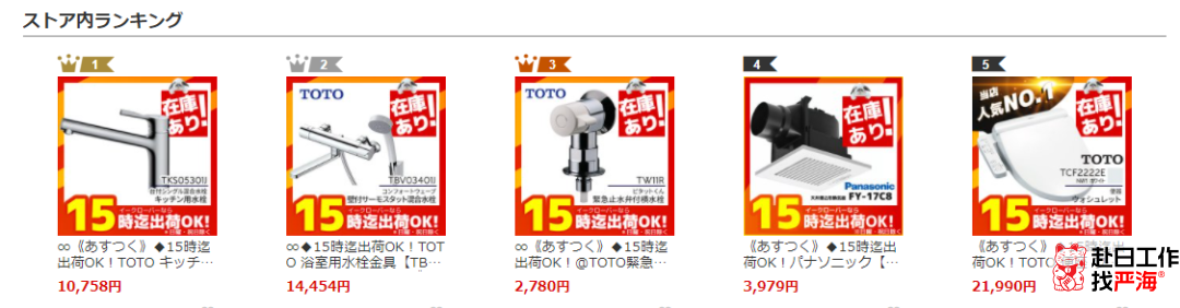 主營產(chǎn)品是換氣扇,水龍頭配件,熱水器,空調(diào)等家庭必須品。【家電と住設(shè)のイークローバー】在雅虎排行榜中已蟬聯(lián)13年,不得不贊嘆他們的服務(wù)是真的好。店鋪上架的產(chǎn)品90%以上都是有庫存的產(chǎn)品,15點(diǎn)前下單的產(chǎn)品當(dāng)天均可發(fā)貨。對于不方便去實(shí)體店購物又急需的人群來說,這家店簡直是救星。