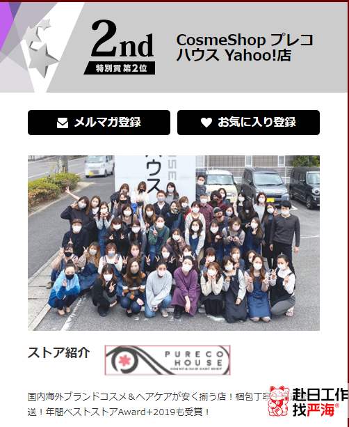 第二名、CosmeShop プレコハウス Yahoo!店