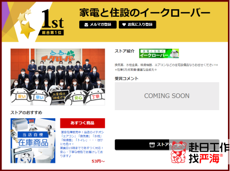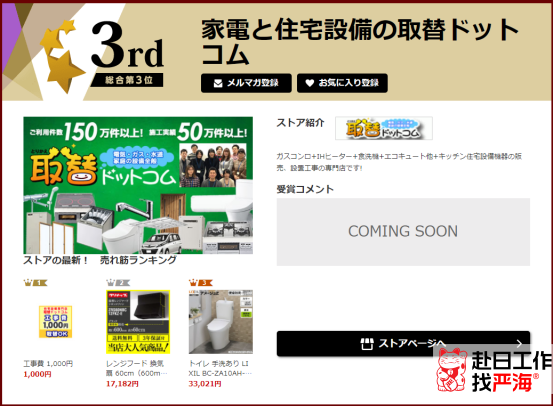 主營產(chǎn)品是燃?xì)庠睿琁H加熱器,洗碗機(jī)等家用電器。【家電と住宅設(shè)備の取替ドットコム】在雅虎排行榜中也已蟬聯(lián)4年,服務(wù)超過150萬戶家庭。店鋪所販賣的產(chǎn)品不僅是產(chǎn)品本身,還包括安裝、維修等。產(chǎn)品免費(fèi)質(zhì)保3年,并且24小時對應(yīng)緊急電話,用戶體驗感非常不錯,好評連連。