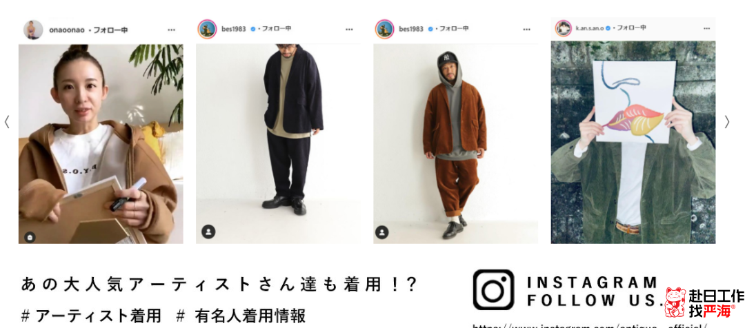 主營產(chǎn)品是女性服裝。店鋪90%的產(chǎn)品都是純色,非常符合日本人低調(diào),簡約的個性。產(chǎn)品都由店鋪獨(dú)立設(shè)計,并不是滿大街都有的款式。店鋪首頁還能看到各類ins紅人身著antiqua家衣服的照片,想必推廣花了很大的心思。