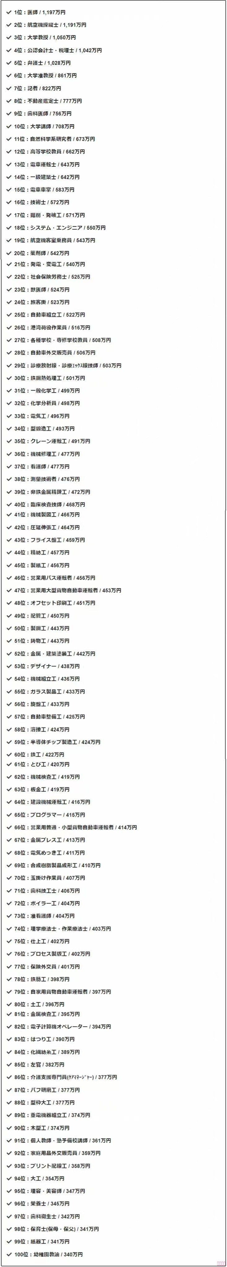 另外,日本哪個職業(yè)賺錢多,列個表給大家參考一下。