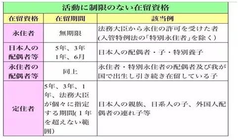 “定居者”等種類
