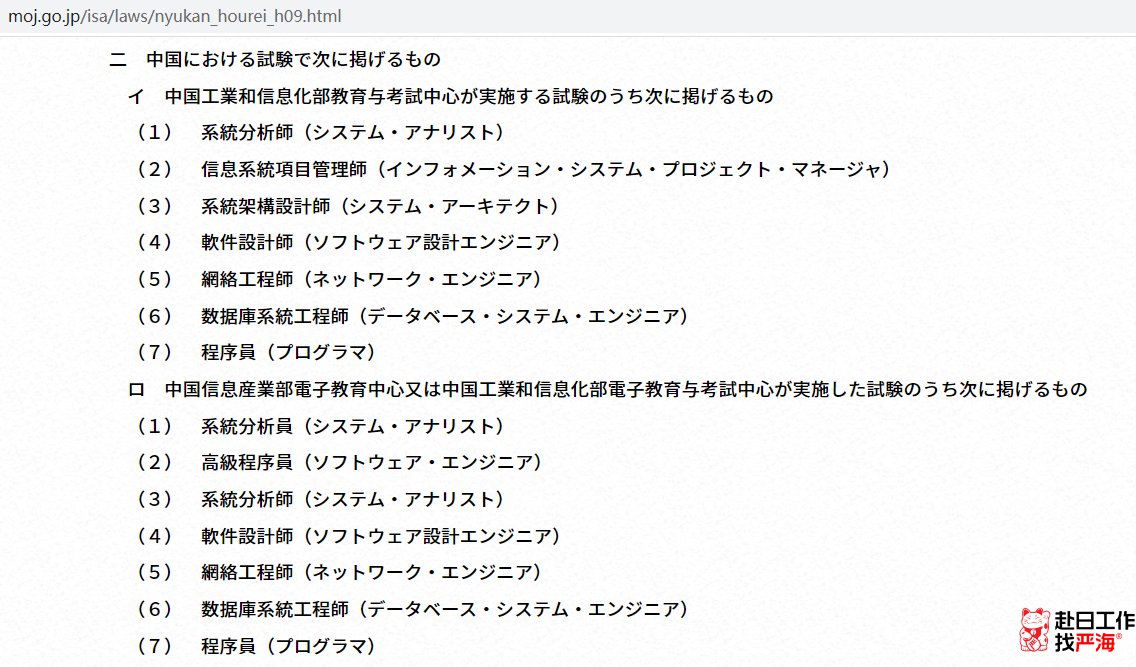 如果學歷不夠,但如果有下面的IT資格證書也有機會申請日本的工作簽證(技術?人文知識?國際業務),